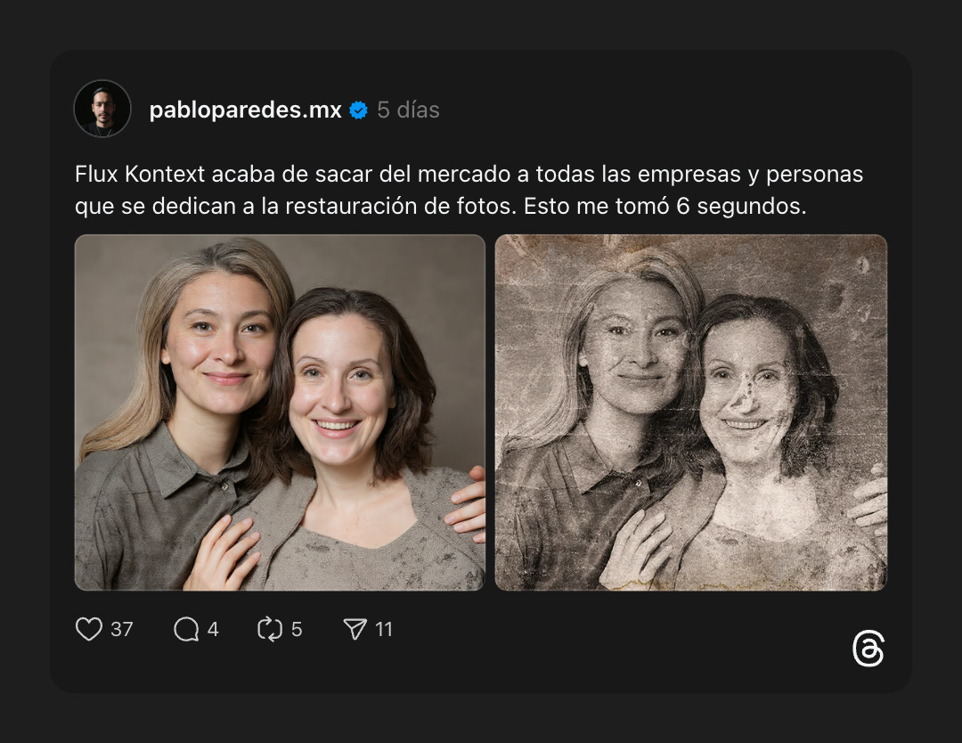 Experimente con Flux Context, una potente herramienta de edición y generación de imagenes que uno de sus principales atributos, es respetar la estructura de la imagen original para transformarla en cualquier cosa que imaginemos. Aquí el paso a paso de cómo utilizarla: