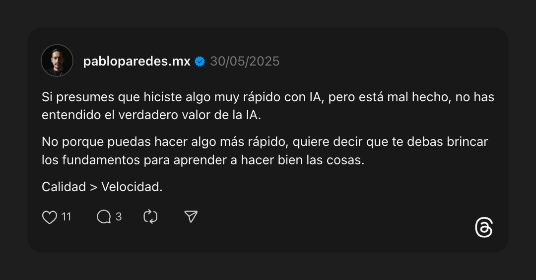 ◦ En un mundo donde las barreras a la creación se rompen constantemente, construir en público no es vergonzoso, es una necesidad. Esto significa que habrá más competencia a medida que surjan nuevas voces y creadores.