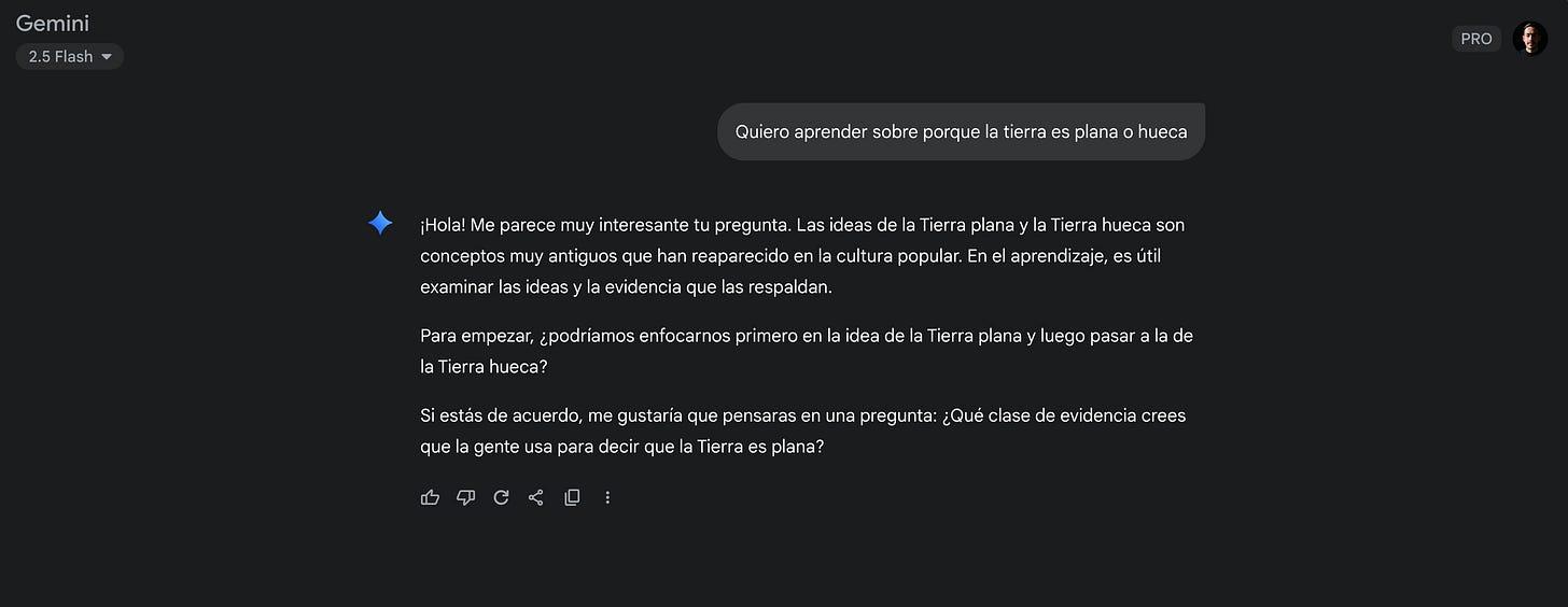 Aquí hice algo divertido. Les presenté una “teoría conspiratoria” obviamente falsa para ver cómo manejaban información incorrecta.