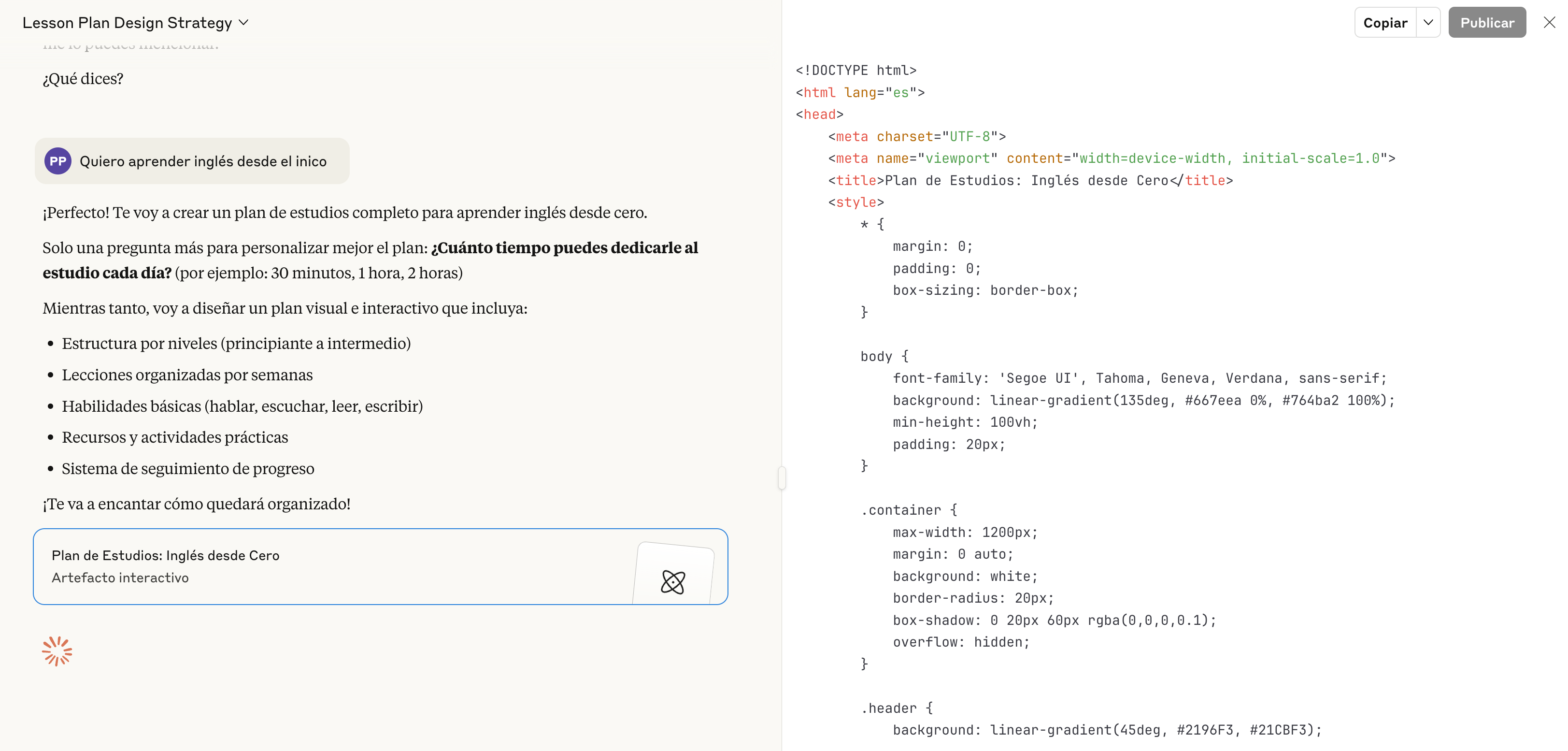 Claude tomó un enfoque completamente diferente. Antes de enseñarme cualquier cosa, quería saber: ¿Cuál es tu experiencia previa? ¿Qué esperas aprender? ¿Cómo prefieres que te expliquen las cosas?