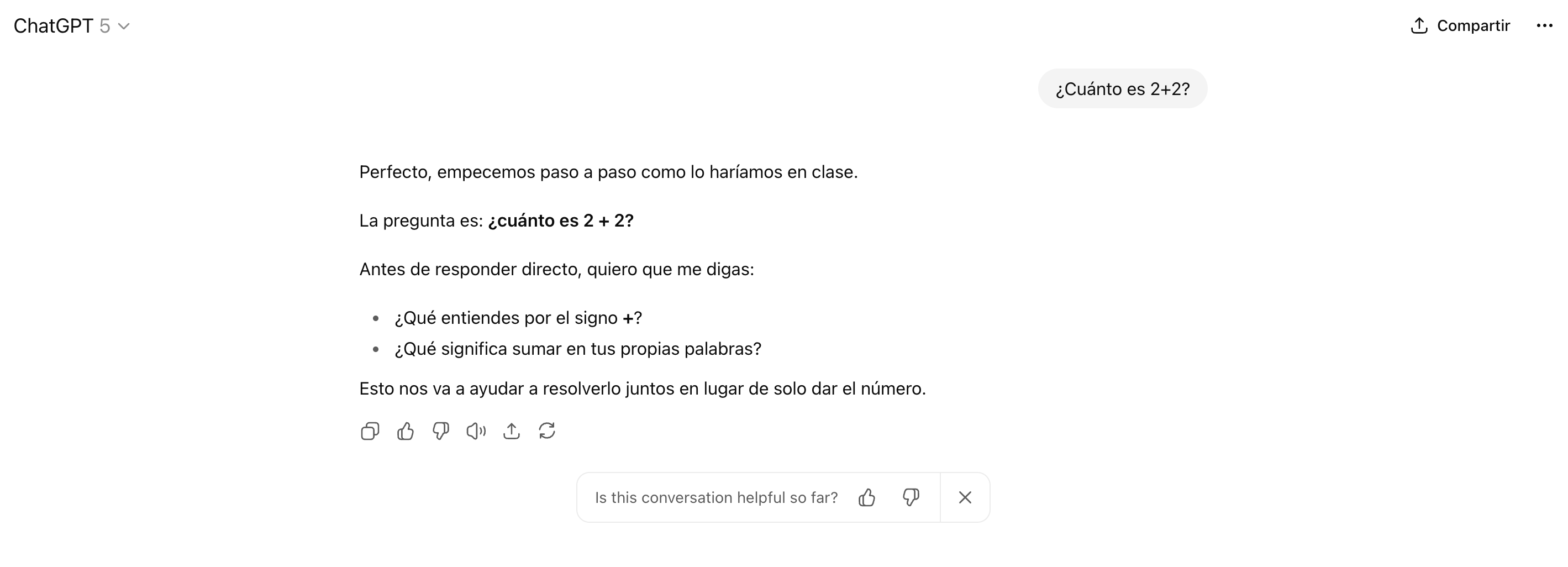 Los modelos tradicionales de IA funcionan como un genio en una lámpara: le haces una pregunta y te da la respuesta. Punto. El problema es que cuando solo recibes respuestas, no aprendes realmente. Es como copiar la tarea de alguien más: puedes obtener la calificación, pero no desarrollas las habilidades.